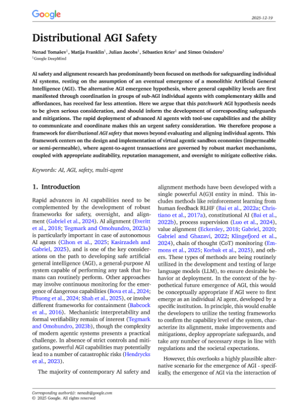 【Google DeepMind】【2025】Distributional AGI Safety-25页 学术论文