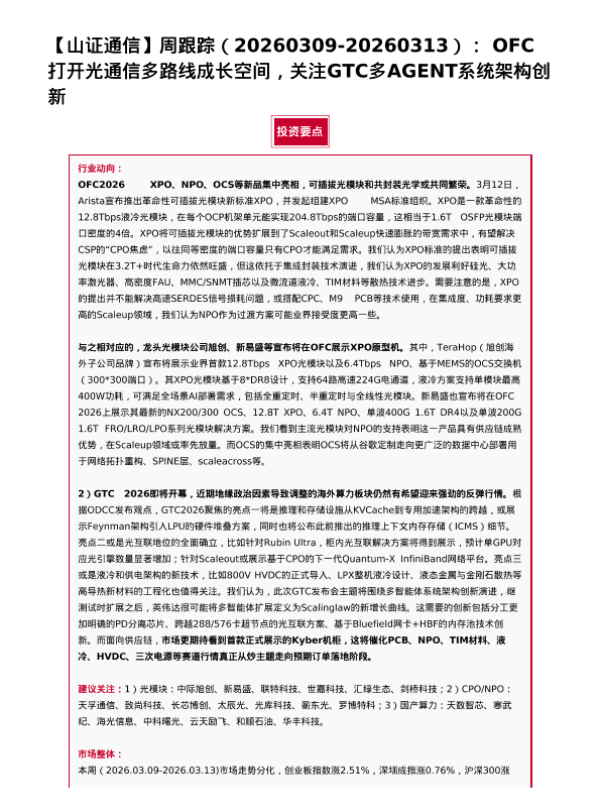 【山西证券】【202603】山证通信|周跟踪(20260309-20260313):OFC打开光通信多路线成长空间,关注GTC多AGENT系统架构创新-6页 证券期货研究报告