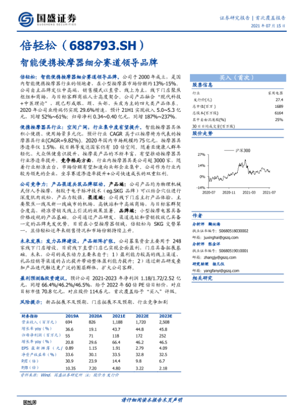 【国盛证券】【20210715】倍轻松:智能便携按摩器细分赛道领导品牌-34页 行业研究