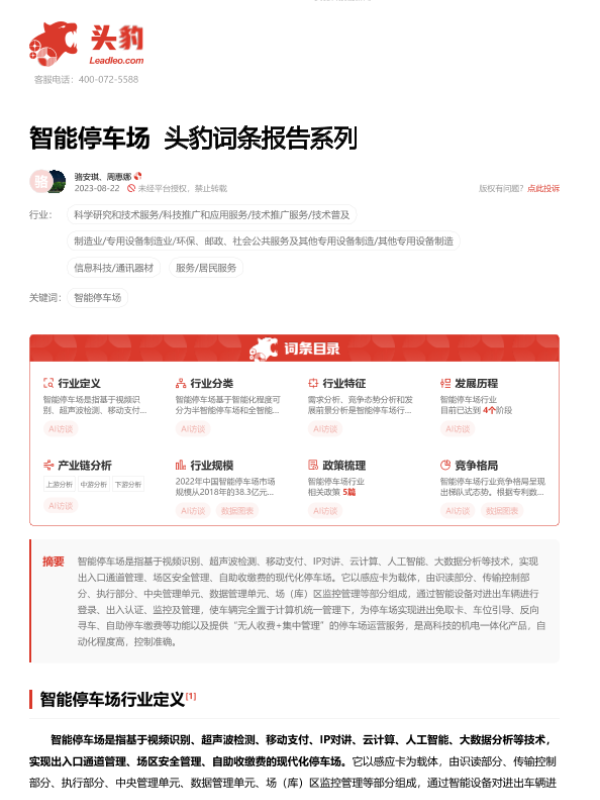 【头豹研究院】【20230822】智能停车场 头豹词条报告系列-18页 行业研究