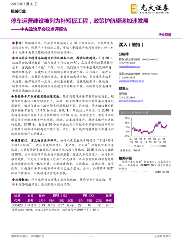 【光大证券】【20190731】机械行业中央政治局会议点评报告:停车运营建设被列为补短板工程,政策护航望迎加速发展-2页 行业研究