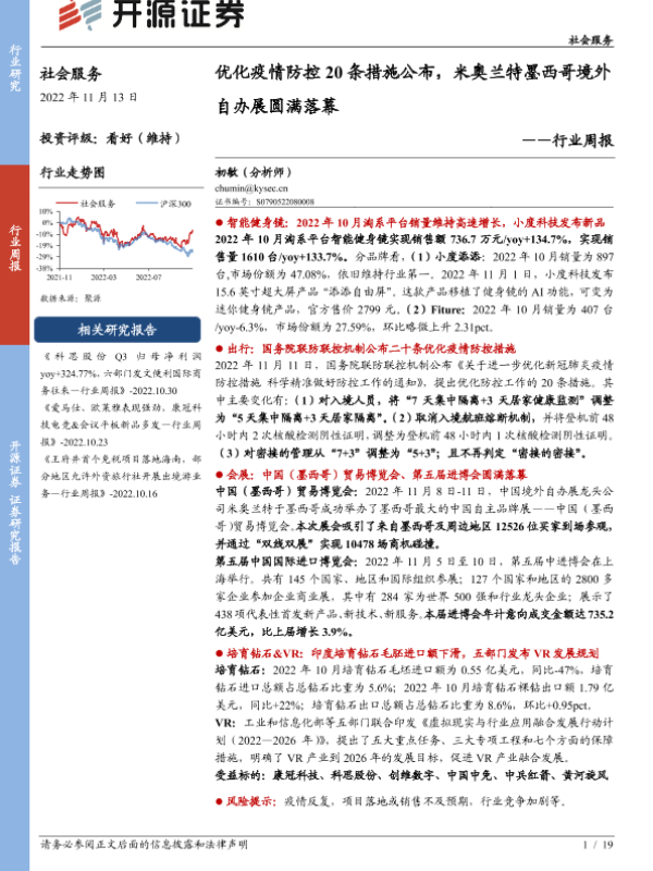 【开源证券】【20221113】社会服务行业周报:优化疫情防控20条措施公布,米奥兰特墨西哥境外自办展圆满落幕-19页 行业研究