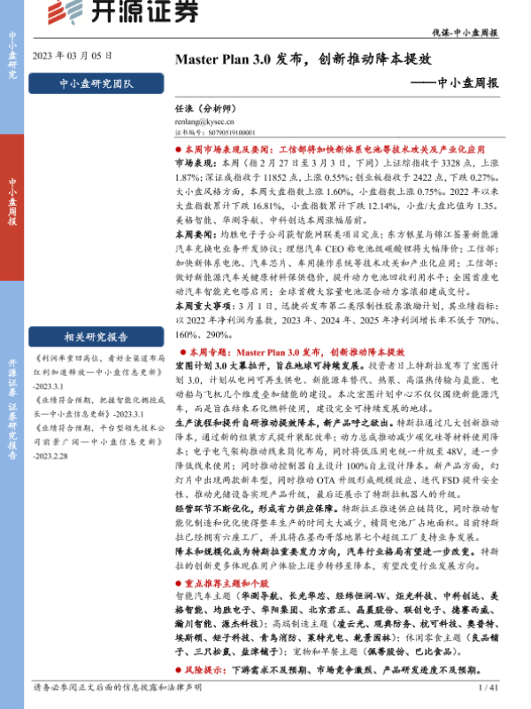 【开源证券】【20230305】中小盘周报:Master Plan 30发布,创新推动降本提效-41页 行业研究