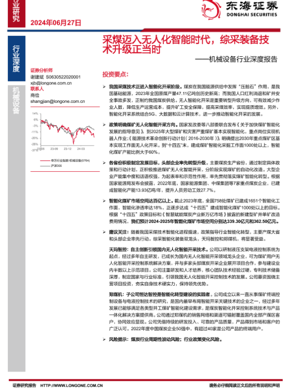 【东海证券】【20240627】采煤迈入无人化智能时代,综采装备技术升级正当时-27页 行业研究