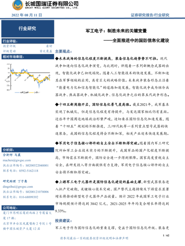【长城国瑞证券】【20220811】军工电子行业:制胜未来的关键变量,全面推进中的国防信息化建设-62页 行业研究