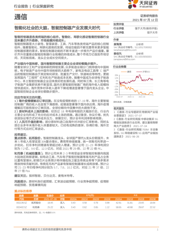 【天风证券】【20210712】通信行业深度研究:智能化社会的大脑,智能控制器产业发展大时代-20页 行业研究