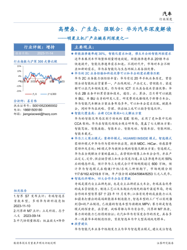 【华安证券】【20231114】高壁垒、广生态、强联合:华为汽车深度解读-54页 行业研究