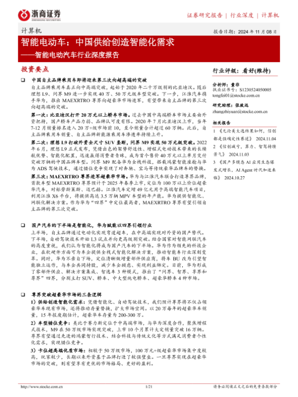 【浙商证券】【20241108】计算机行业智能电动汽车行业深度报告:智能电动车,中国供给创造智能化需求-21页 行业研究
