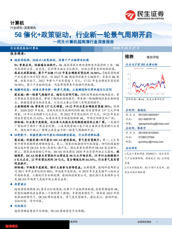 【民生证券】【20200327】民生计算机超高清行业深度报告:5G催化+政策驱动,行业新一轮景气周期开启-32页 行业研究