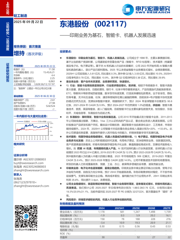 【申万宏源】【202509】东港股份(002117)——印刷业务为基石,智能卡、机器人发展迅速-28页 证券期货研究报告