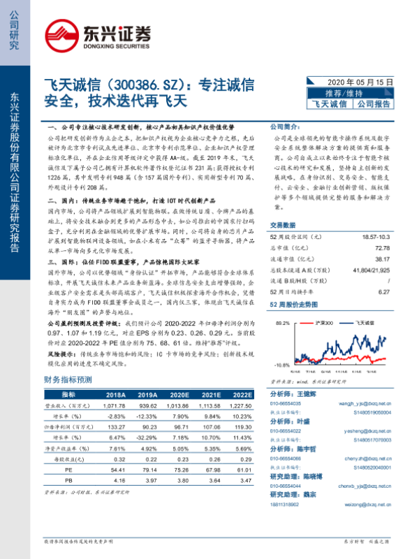 【东兴证券】【20200515】飞天诚信(300386.SZ):专注诚信安全,技术迭代再飞天-29页 行业研究