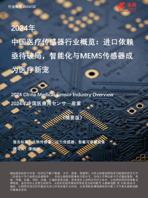 【头豹研究院】【202402】2024年中国医疗传感器行业概览-进口依赖亟待破局-智能化与MEMS传感器成为医疗新宠(摘要版)-9页 行业研究
