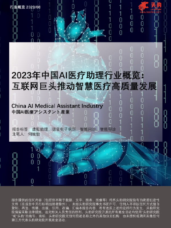 【头豹研究院】【202308】2023年中国AI医疗助理行业概览:互联网巨头推动智慧医疗高质量发展-23页 行业研究