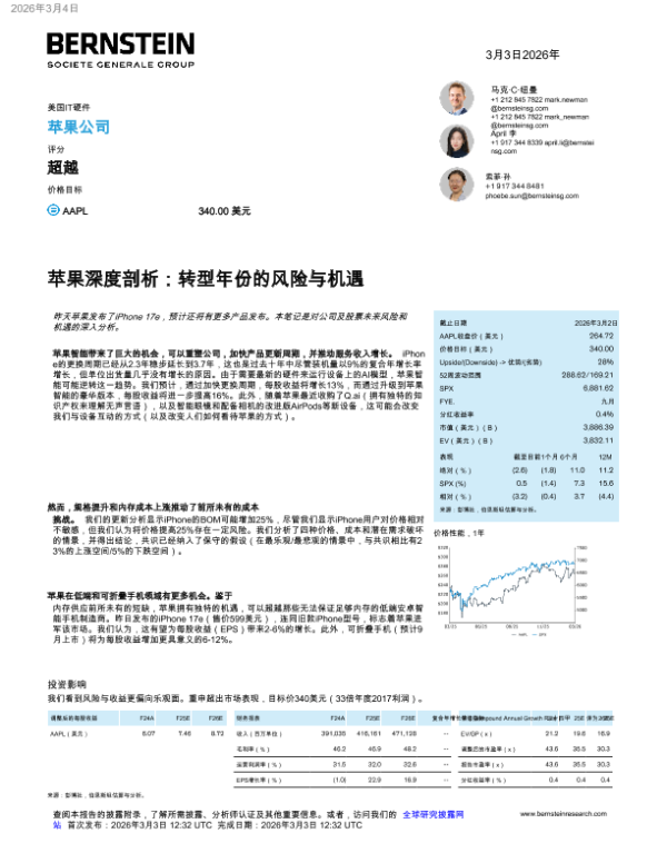 【Bernstein】【202603】Apple Deep Dive Risks and Opportunities in a year of transition-30页 证券期货研究报告