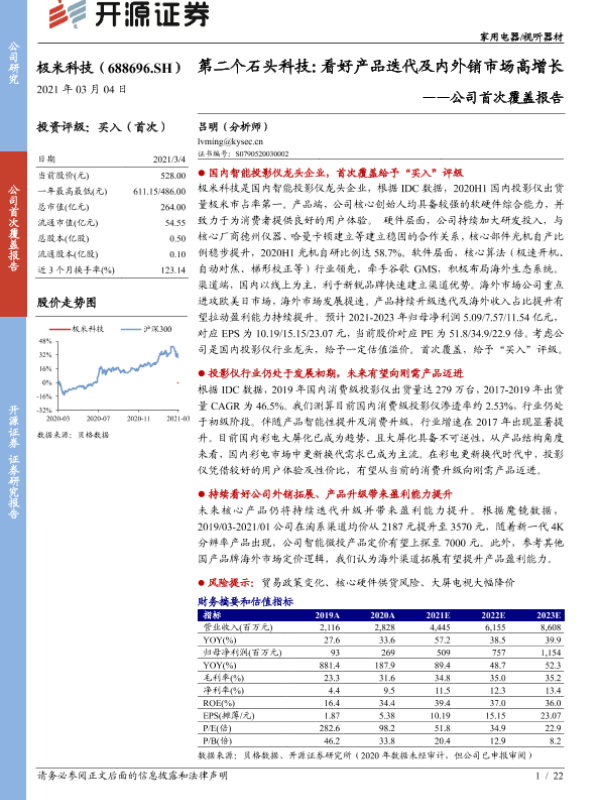 【开源证券】【20210304】极米科技-688696.SH-公司首次覆盖报告:第二个石头科技:看好产品迭代及内外销市场高增长-22页 行业研究
