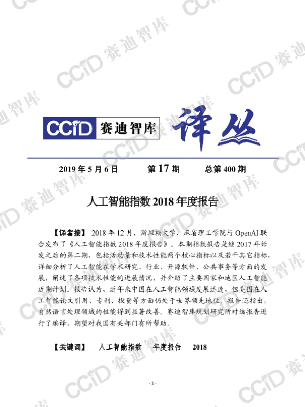 【斯坦福大学&麻省理工学院&OpenAI】【201812】人工智能指数2018年度报告-23页 行业研究
