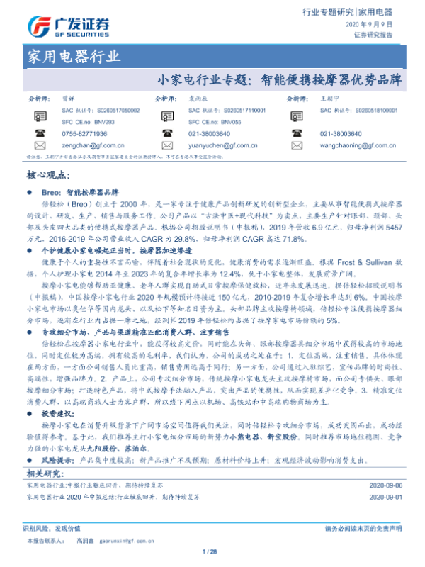 【广发证券】【20200909】小家电行业专题:智能便携按摩器优势品牌-28页 行业研究