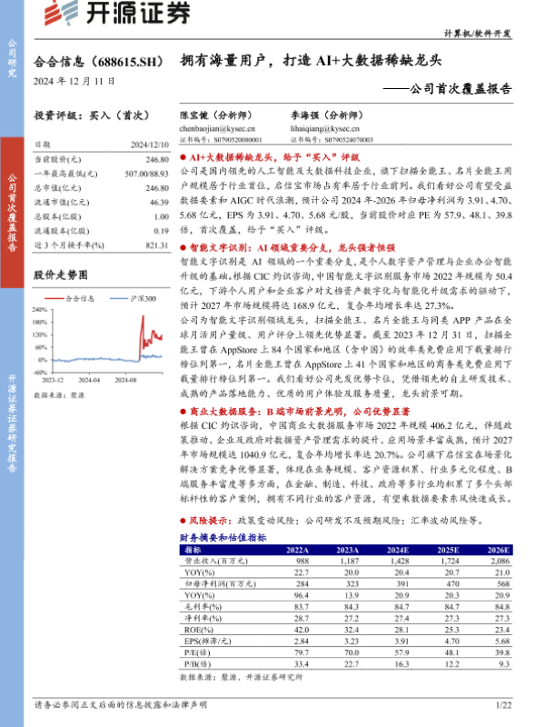 【开源证券】【20241211】合合信息(688615)公司首次覆盖报告:拥有海量用户,打造AI+大数据稀缺龙头-22页 行业研究
