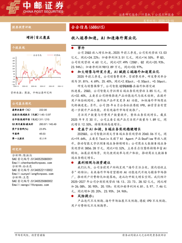 【中邮证券】【202512】合合信息(688615) 收入逐季加速,AI加速海外商业化-5页 证券期货研究报告