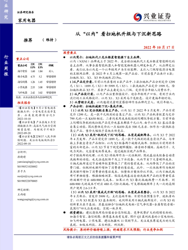 【兴业证券】【20221017】从“以内”看扫地机升级与下沉新思路-10页 行业研究