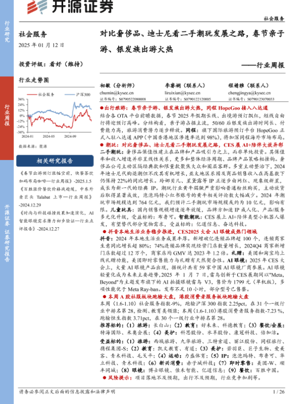 【开源证券】【20250115】对比奢侈品、迪士尼看二手潮玩发展之路,春节亲子游、银发族出游火热-26页 行业研究
