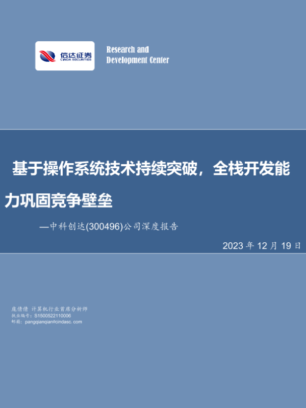【信达证券】【20231219】20231219-信达证券-中科创达-300496.SZ-公司深度报告:基于操作系统技术持续突破,全栈开发能力巩固竞争壁垒-59页 行业研究
