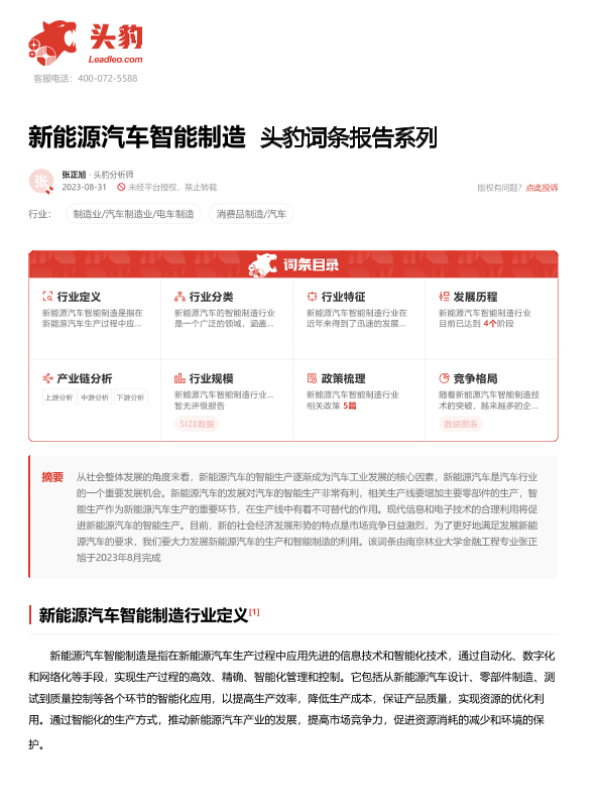 【头豹研究院】【20230831】20240103-头豹研究院-新能源汽车智能制造 头豹词条报告系列-20页 行业研究