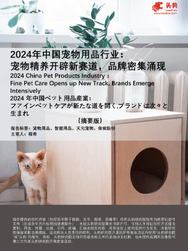 【头豹研究院】【202411】2024年中国宠物用品行业:宠物精养开辟新赛道,品牌密集涌现(摘要版)-12页 行业研究