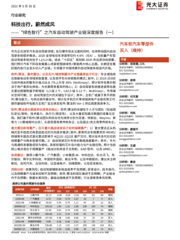 【光大证券】【20210530】“绿色智行”之汽车自动驾驶产业链深度报告(一):科技出行,蔚然成风-57页 行业研究
