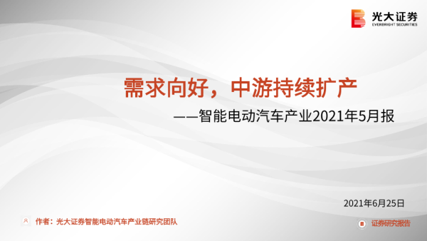 【光大证券】【20210625】智能电动汽车产业2021年5月报:需求向好,中游持续扩产-29页 行业研究