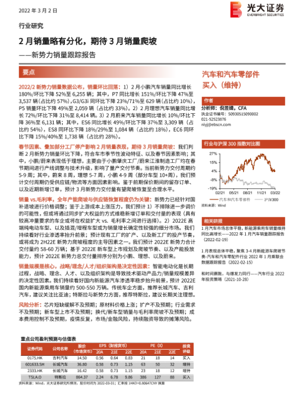 【光大证券】【20220302】2月销量略有分化,期待3月销量爬坡——新势力销量跟踪报告-3页 行业研究