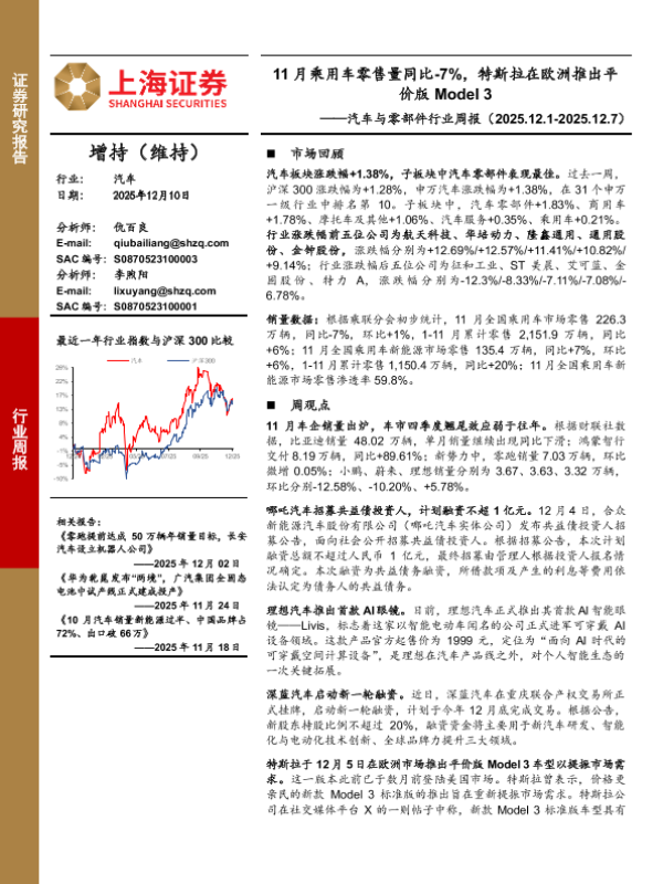 【上海证券】【202512】汽车与零部件行业周报(2025.12.1-2025.12.7)-3页 证券期货研究报告