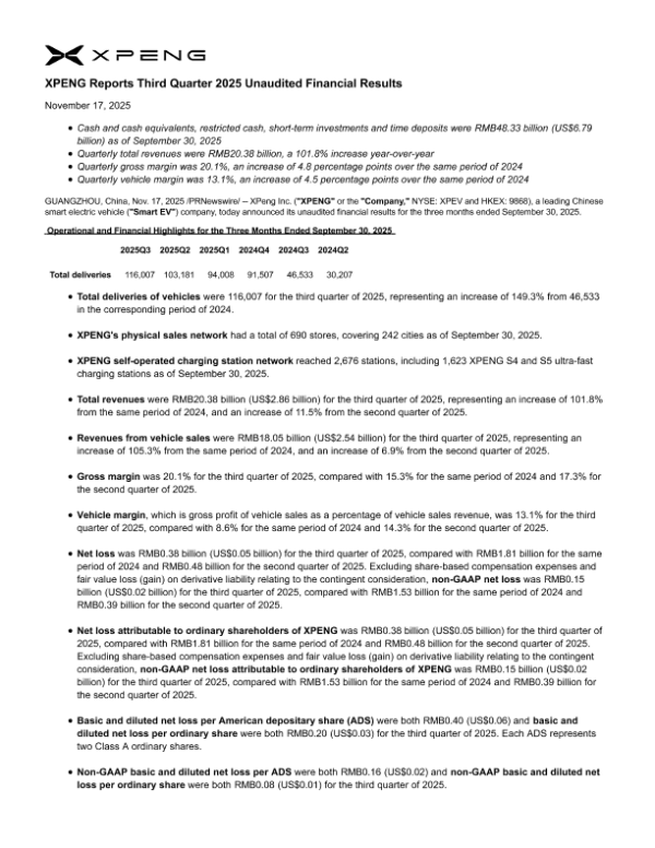 【XPeng Inc.】【202511】XPENG Reports Third Quarter 2025 Unaudited Financial Results-8页 财报