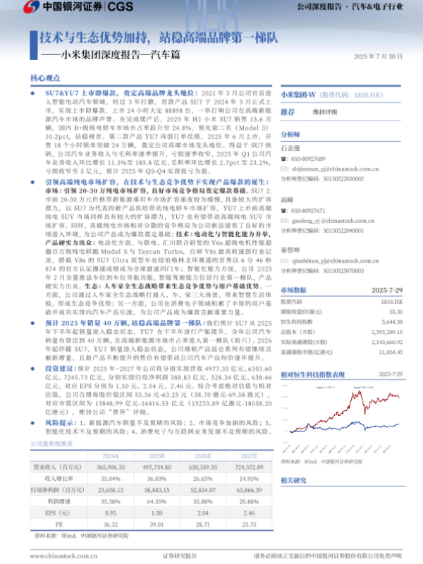 【银河证券】【20250730】小米集团深度报告-汽车篇:技术与生态优势加持,站稳高端品牌第一梯队-27页 公司研究