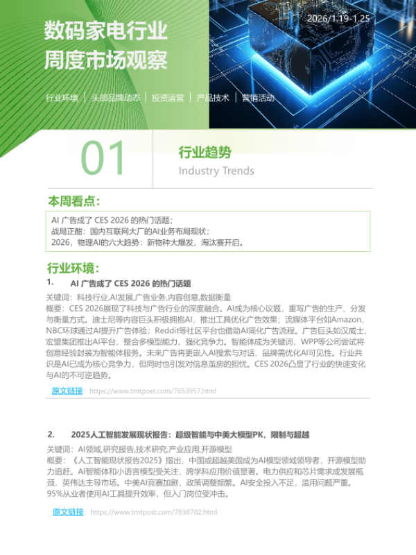 【艾瑞咨询】【202601】数码家电行业周度市场观察-10页 市场调研