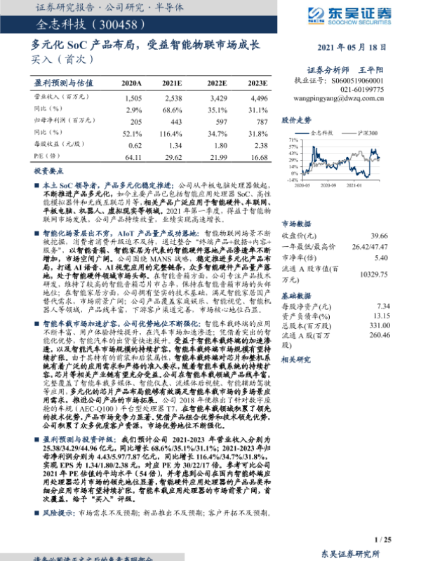 【东吴证券】【20210518】多元化SoC产品布局,受益智能物联市场成长-25页 行业研究
