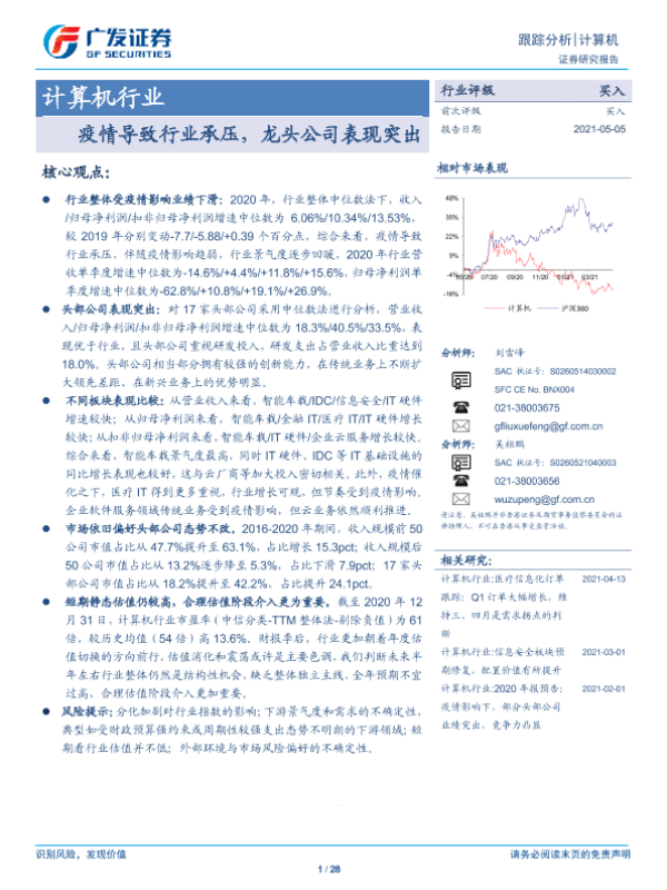 【广发证券】【20210505】20210505-广发证券-计算机行业跟踪分析:疫情导致行业承压,龙头公司表现突出-28页 行业研究