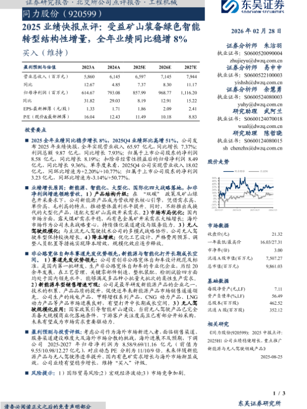 【东吴证券】【202602】2025业绩快报点评:受益矿山装备绿色智能转型结构性增量,全年业绩同比稳增8%-3页 证券期货研究报告