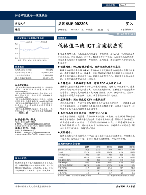 【国信证券】【20190730】低估值二线ICT方案供应商-32页 行业研究
