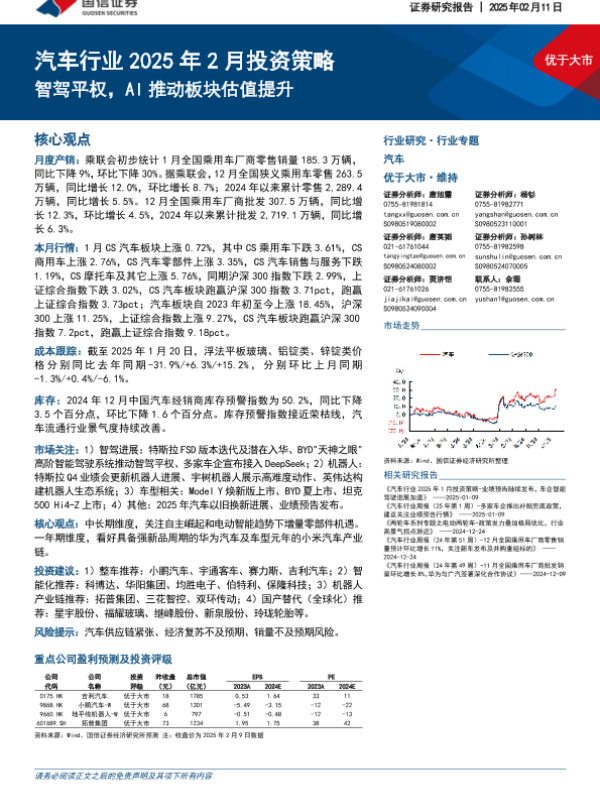 【国信证券】【20250211】汽车行业2025年2月投资策略:智驾平权,AI推动板块估值提升-34页 行业研究