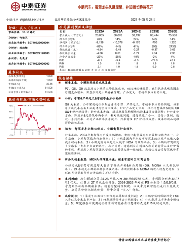 【中泰证券】【20240528】小鹏汽车-W(9868.HK)智驾龙头凤凰涅槃,补短扬长静待花开-28页 行业研究