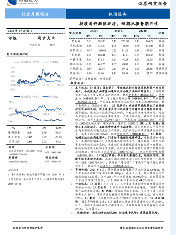 【财信证券】【20210708】休闲服务行业:持续看好颜值经济,短期把握暑期行情-12页 行业研究