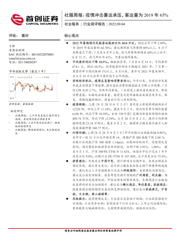 【首创证券】【20220904】社服周报:疫情冲击暑运承压,客运量为2019年65%-12页 行业研究