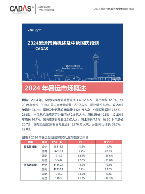 【科技驱动的民航咨询机构】【2024】2024年暑运市场概述及中秋国庆预测-11页 行业研究