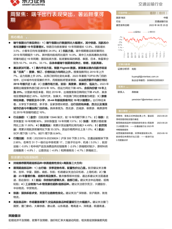 【东方证券】【20230625】交通运输行业周聚焦:端午出行表现突出,暑运旺季可期-22页 行业研究