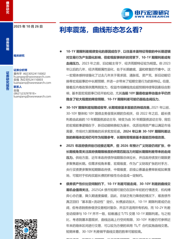 【申万宏源】【202510】利率震荡,曲线形态怎么看-14页 证券期货研究报告