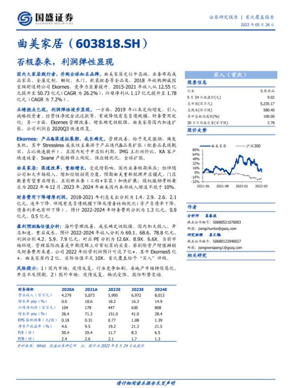 【国盛证券】【20220526】曲美家居(603818.SH):否极泰来,利润弹性显现-32页 行业研究