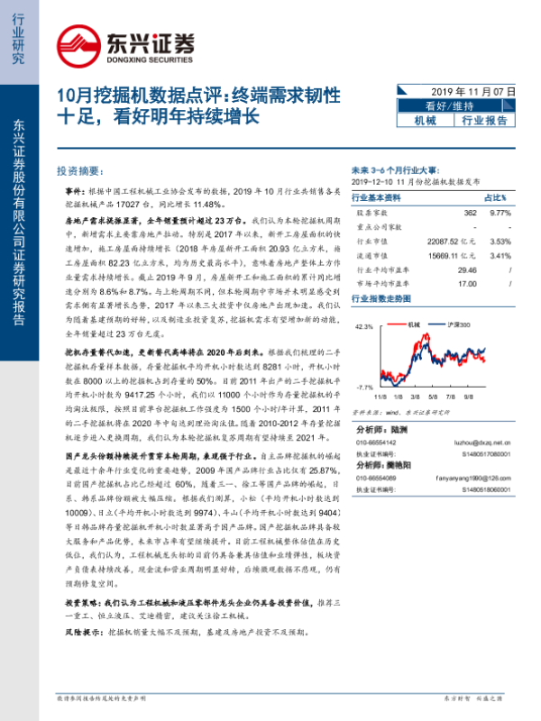 【东兴证券】【20191107】10月挖掘机数据点评:终端需求韧性十足,看好明年持续增长-4页 行业研究