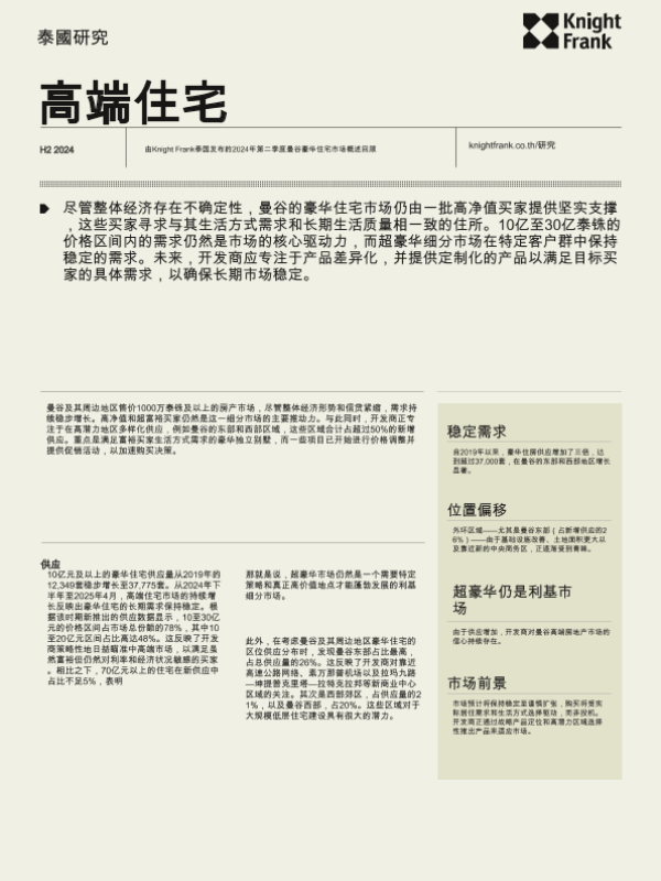 【Knight Frank Thailand】【202407】房地产行业:2024年下半年曼谷豪华住宅市场-6页 行业研究