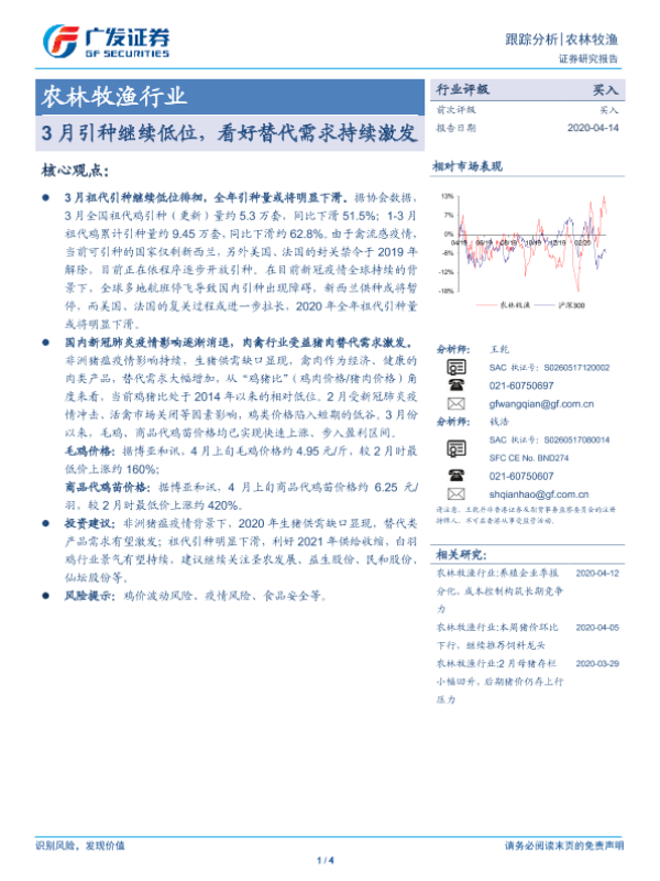 【广发证券】【20200414】农林牧渔行业跟踪分析:3月引种继续低位,看好替代需求持续激发-4页 行业研究